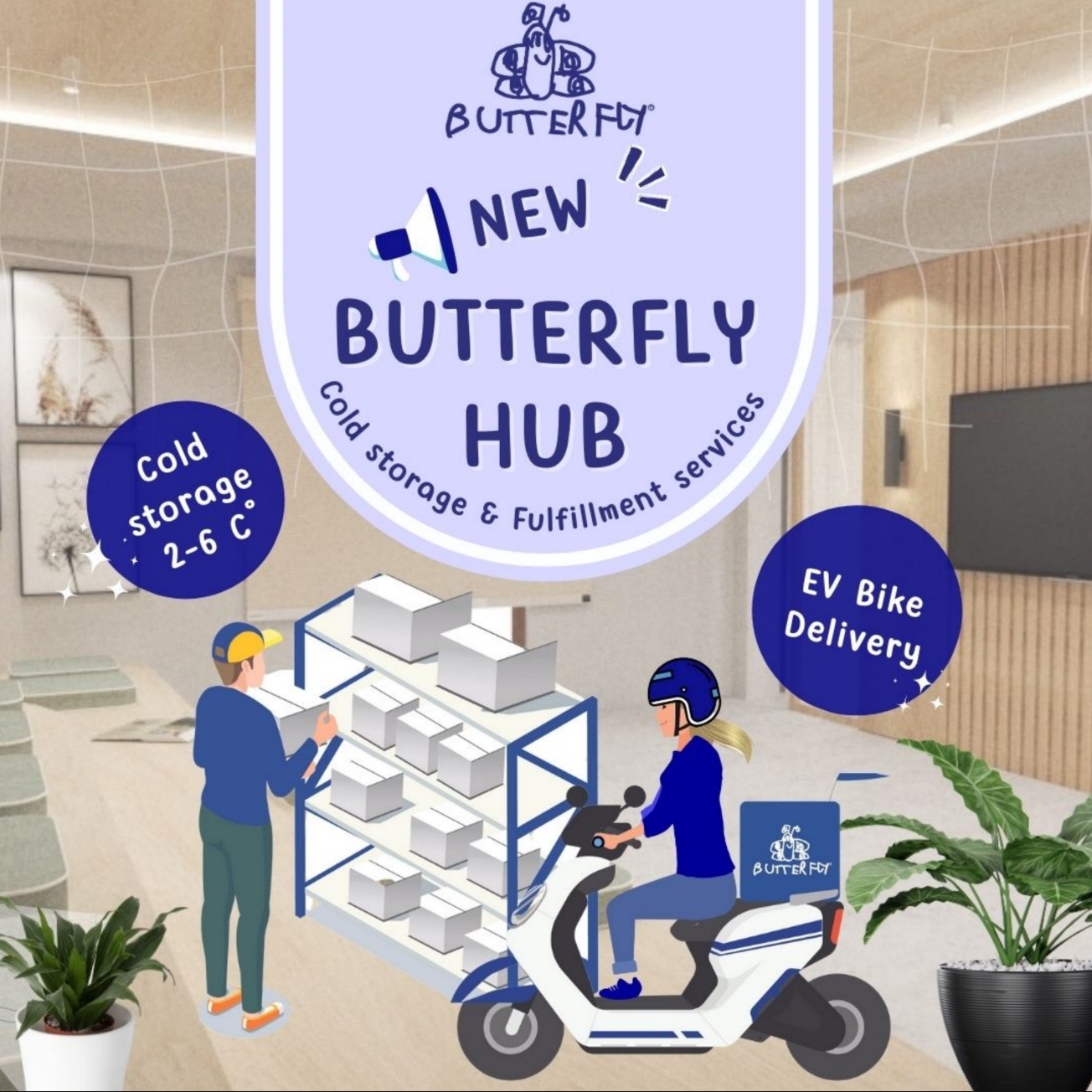 นอกจากบริการรับผลิตสินค้า OEM ที่ครบวงจรแล้ว Butterfly Hub เข้าใจดีถึงความต้องการของธุรกิจอาหารและสุขภาพ โดยเฉพาะผู้ประกอบการรายย่อยหรือ SMEs ที่อาจไม่มีงบประมาณหรือพื้นที่ในการสร้างคลังสินค้าห้องเย็นเป็นของตัวเอง เราจึงพัฒนา Butterfly Hub ให้เป็นศูนย์รวมสำหรับสังคมคนรักสุขภาพ โดยมีบริการสำคัญอย่าง