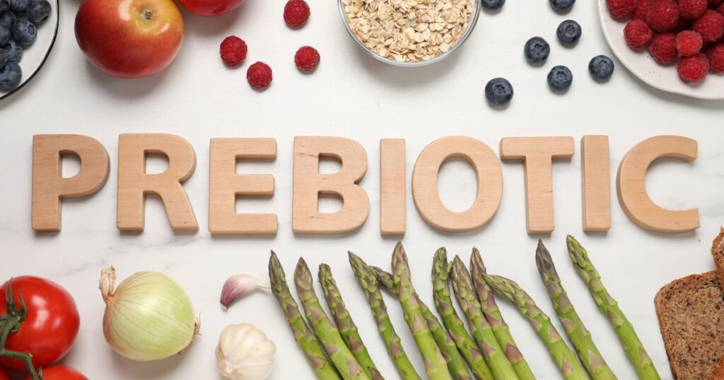 Prebiotic คือ ใยอาหารจากธรรมชาติที่ช่วยเลี้ยงจุลินทรีย์ดี เช่น ผัก กระเทียม หอมใหญ่ หน่อไม้ฝรั่ง ผลไม้ กล้วย แอปเปิล เบอร์รี่ ธัญพืช ข้าวโอ๊ต ข้าวบาร์เลย์ หรือถั่ว ถั่วเหลือง ถั่วแดง ถั่วลันเตา
