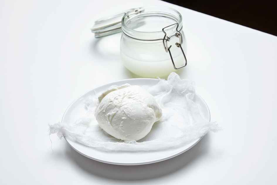 หลังจากหมักโยเกิร์ตจนเซ็ตตัวแล้ว (ใช้เวลาประมาณ 8–12 ชั่วโมง) ให้นำมากรองด้วยผ้าขาวบางหรือถุงกรองกาแฟประมาณ 2–6 ชั่วโมง เพื่อแยกน้ำเวย์ออก ยิ่งกรองนาน เนื้อจะยิ่งข้น แต่ไม่ควรเกิน 6 ชั่วโมง เพราะอาจทำให้เนื้อแห้งเกินไป