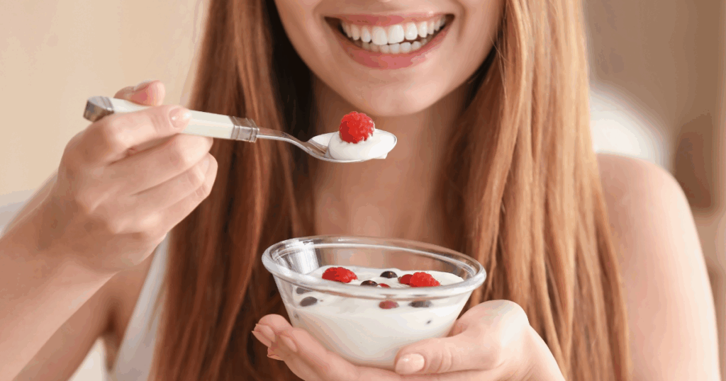 บทความนี้เราจะมาอธิบายว่ากินโยเกิร์ตตอนไหนช่วยขับถ่าย เพราะการกินโยเกิร์ตไม่ได้ทำหน้าที่ขับถ่ายเหมือนยา ทุกคนจึงควรทำความเข้าใจว่ากินโยเกิร์ตตอนไหนดีและกินโยเกิร์ตตอนไหนดีที่สุด แต่ละช่วงเวลาที่กินส่งผลดีต่างกันอย่างไร อีกทั้งเรายังอธิบายว่ากินโยเกิร์ตที่ช่วยในการขับถ่าย กินทุกวันได้หรือไม่ หากกินโยเกิร์ตช่วยขับถ่ายมีประโยชน์อะไรอีกบ้าง เมื่อแบ่งตามช่วงเวลากินโยเกิร์ตตอนเช้า เที่ยง เย็น และก่อนนอน รวมถึงอธิบายว่าประเภทของโยเกิร์ตรสไหนดีช่วยขับถ่าย สุดท้ายจึงตอบคำถามที่พบบ่อยสุนัขท้องเสียกินโยเกิร์ตได้ไหม และโยเกิร์ตยี่ห้อไหนช่วยขับถ่าย เพื่อให้ทุกคนมีความเข้าใจที่ถูกต้องเกี่ยวกับการทานโยเกิร์ต กินโยเกิร์ตที่ช่วยในการขับถ่าย กินทุกวันได้หรือไม่  โยเกิร์ตสามารถช่วยในกระบวนการขับถ่ายได้บ้าง แต่ไม่ใช่วิธีเดียวที่ช่วยขับถ่าย เพราะการขับถ่ายเป็นกระบวนการธรรมชาติของระบบทางเดินอาหารภายในร่างกาย และมีหลายปัจจัยที่มีผลต่อการทำงานของกระบวนการนี้ โยเกิร์ตสามารถเสริมสร้างสภาพแวดล้อมในระบบทางเดินอาหารที่เป็นประโยชน์ให้มีประสิทธิภาพมากขึ้น ดังนี้ 1. สารในโยเกิร์ตอาจช่วยกระตุ้นการทำงานของลำไส้ ความเป็นกรดของโยเกิร์ตอาจช่วยกระตุ้นการทำงานของลำไส้ ซึ่งอาจช่วยให้การขับถ่ายเป็นไปอย่างราบรื่นและปกติ 2. สารในโยเกิร์ตอาจเป็นประโยชน์ต่อแบคทีเรียดีในลำไส้ แบคทีเรียดีในลำไส้เป็นประโยชน์ในการสร้างสมดุลในระบบทางเดินอาหาร ทำให้การขับถ่ายมีประสิทธิภาพ 3. สารในโยเกิร์ตอาจช่วยลดอาการความไม่สบายในท้อง การบริโภคโยเกิร์ตอาจช่วยลดอาการความไม่สบายในท้อง เช่น อาการท้องอืด คลื่นไส้ กินโยเกิร์ตช่วยขับถ่ายมีประโยชน์อะไรบ้าง การกินโยเกิร์ตช่วยขับถ่าย แก้ท้องผูกอาจมีประโยชน์ต่อการขับถ่ายและสุขภาพทั่วไปของระบบทางเดินอาหาร ดังนี้ 1. เสริมสร้างสมดุลในระบบทางเดินอาหาร โยเกิร์ตมีแบคทีเรียดีที่ช่วยในการควบคุม สร้างสมดุลในระบบทางเดินอาหาร ช่วยในกระบวนการย่อยอาหารและดูดซึมสารอาหารในลำไส้เล็ก 2. ส่งเสริมการทำงานของระบบภูมิคุ้มกัน โยเกิร์ตประกอบด้วยแบคทีเรียดีและโพรไบโอติกในโยเกิร์ตต่อสู้กับแบคทีเรียที่เป็นอันตราย ช่วยเสริมสร้างระบบภูมิคุ้มกันของร่างกาย 3. ลดอาการความไม่สบายในท้อง การกินโยเกิร์ตอาจช่วยลดอาการความไม่สบายในท้อง เช่น อาการท้องอืด คลื่นไส้ และท้องผูก 4. ส่งเสริมการดูแลฟัน โยเกิร์ตที่มีแบคทีเรียชนิดดีสามารถช่วยลดการสะสมของแบคทีเรียที่เป็นอันตรายในช่องปาก