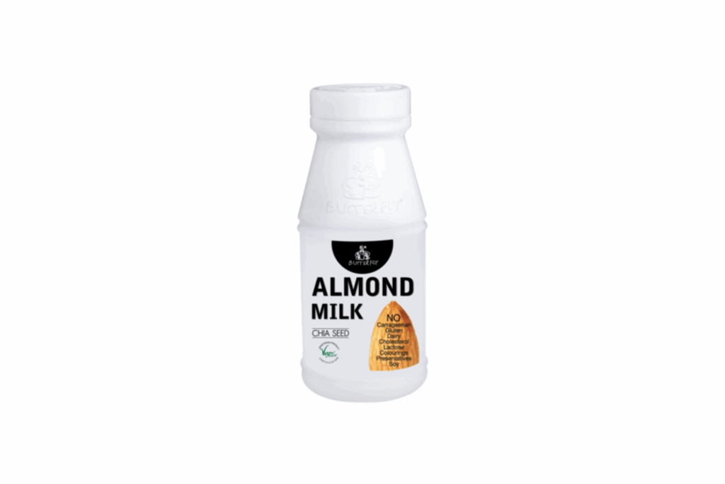 น้ำนมอัลมอนด์ ผสมเม็ดเจีย ผลิตจากน้ำนมที่ได้จากถั่วอัลมอนด์ ซึ่งผ่านกระบวนการผลิตจากธรรมชาติ ออร์แกนิค 100% นอกจากนั้นยังเติมเมล็ดเจียเข้าไป ช่วยเพิ่มไฟเบอร์ อิ่มท้องนานขึ้น และเพิ่มคุณค่าทางสารอาหารอีกด้วย