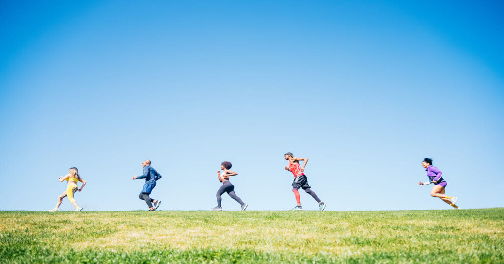 1. ท่าเดินเร็วหรือวิ่งเหยาะ ๆ 5–10 นาที