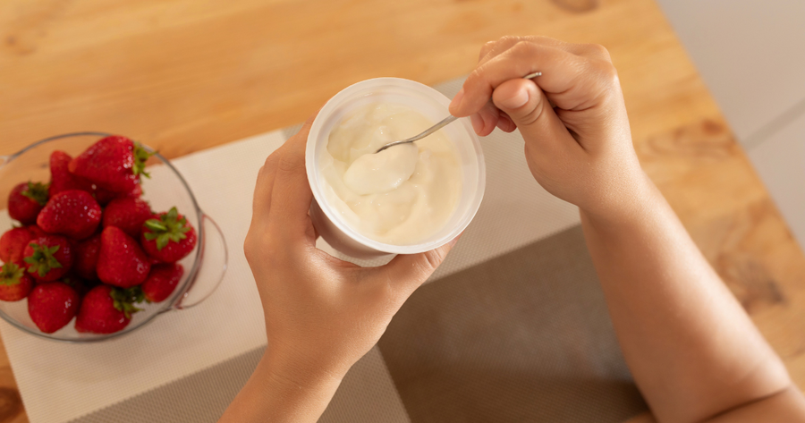 4. อาหารที่มีโปรไบโอติกและจุลินทรีย์สูง เช่น โยเกิร์ต นมเปรี้ยวพร้อมดื่ม หรือกรีกโยเกิร์ต เพื่อช่วยปรับสมดุลลำไส้ และระบบขับถ่ายให้ดีมากขึ้น