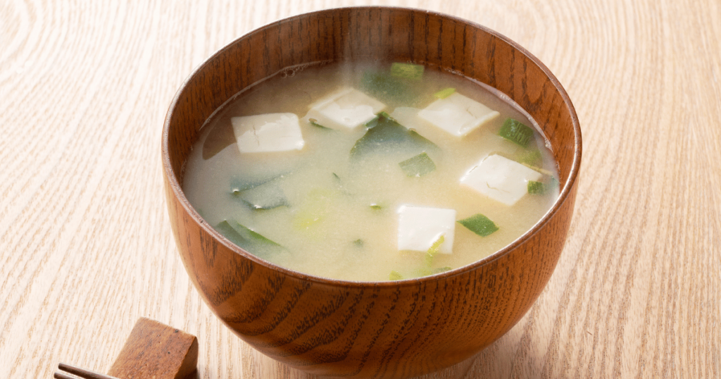 มิโสะเป็นผลิตภัณฑ์ถั่วหมักที่มีโพรไบโอติก ควรเติมมิโสะหลังจากปิดไฟแล้ว เพื่อลดการสูญเสียจุลินทรีย์ดี เมนูนี้เหมาะสำหรับมื้อเบาๆ ย่อยได้ง่ายๆ